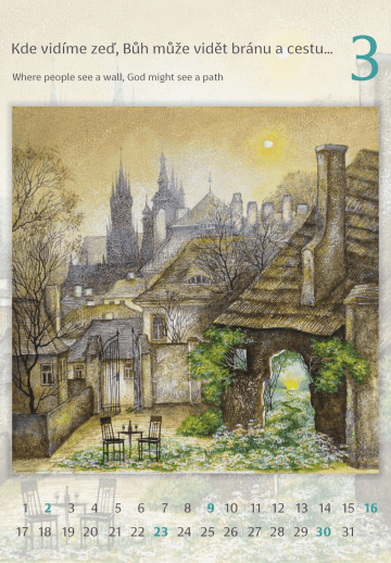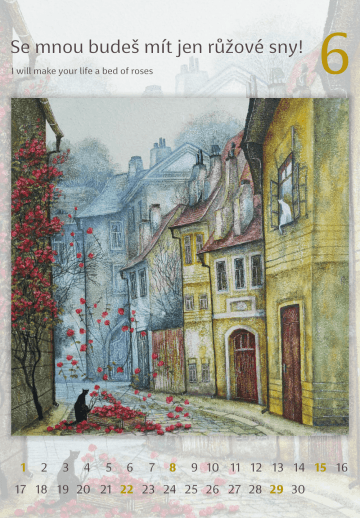 Klikaté cesty, peřina, židle, stůl (a něco na něm), rozsvícená okna a v něm občas kočka, to vše jsou pro mne synonyma domova, kde by měl na nás vždy někdo čekat... Toto jsou témata, ke kterým se i v tomto kalendáři opakovaně vracím, protože domov je pro mne to nejdůležitější místo na světě.
